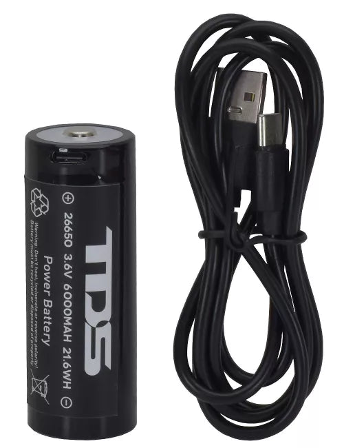 Akku: 1x Lithium-Ion 26650, USB-C Ladefunktion